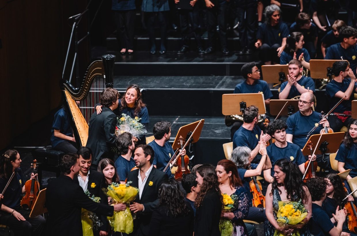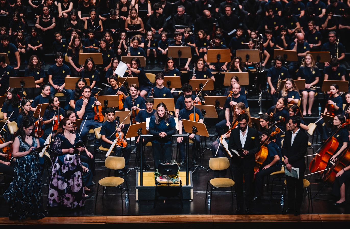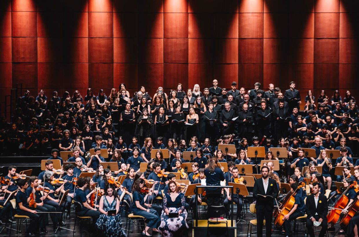 Integrado nas celebrações dos 100 Anos de Mário Soares, e sob o mote de “encontro de centenários”, o espetáculo contou com a direção da conceituada maestrina Joana Carneiro, que dirigiu com entusiasmo uma orquestra composta por músicos da Escola Artística de Música do Conservatório Nacional, da Orquestra Geração, da Escola Artística do Instituto Gregoriano de Lisboa, da Escola de Música de Nossa Senhora do Cabo e da Escola de Música do Colégio Moderno. A estes jovens músicos juntaram-se o coro Voces Caelestes e os solistas Rafaela Albuquerque (soprano), Cátia Moreso (mezzo), André Henriques (barítono) e Frederico Projecto (tenor).