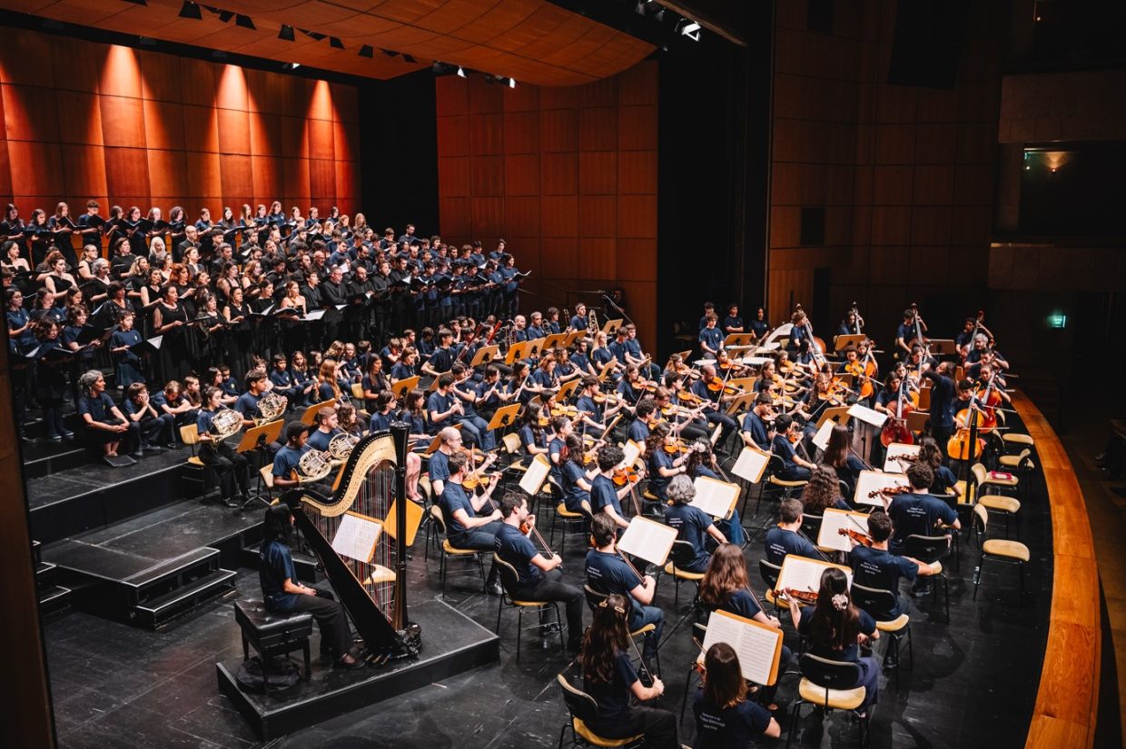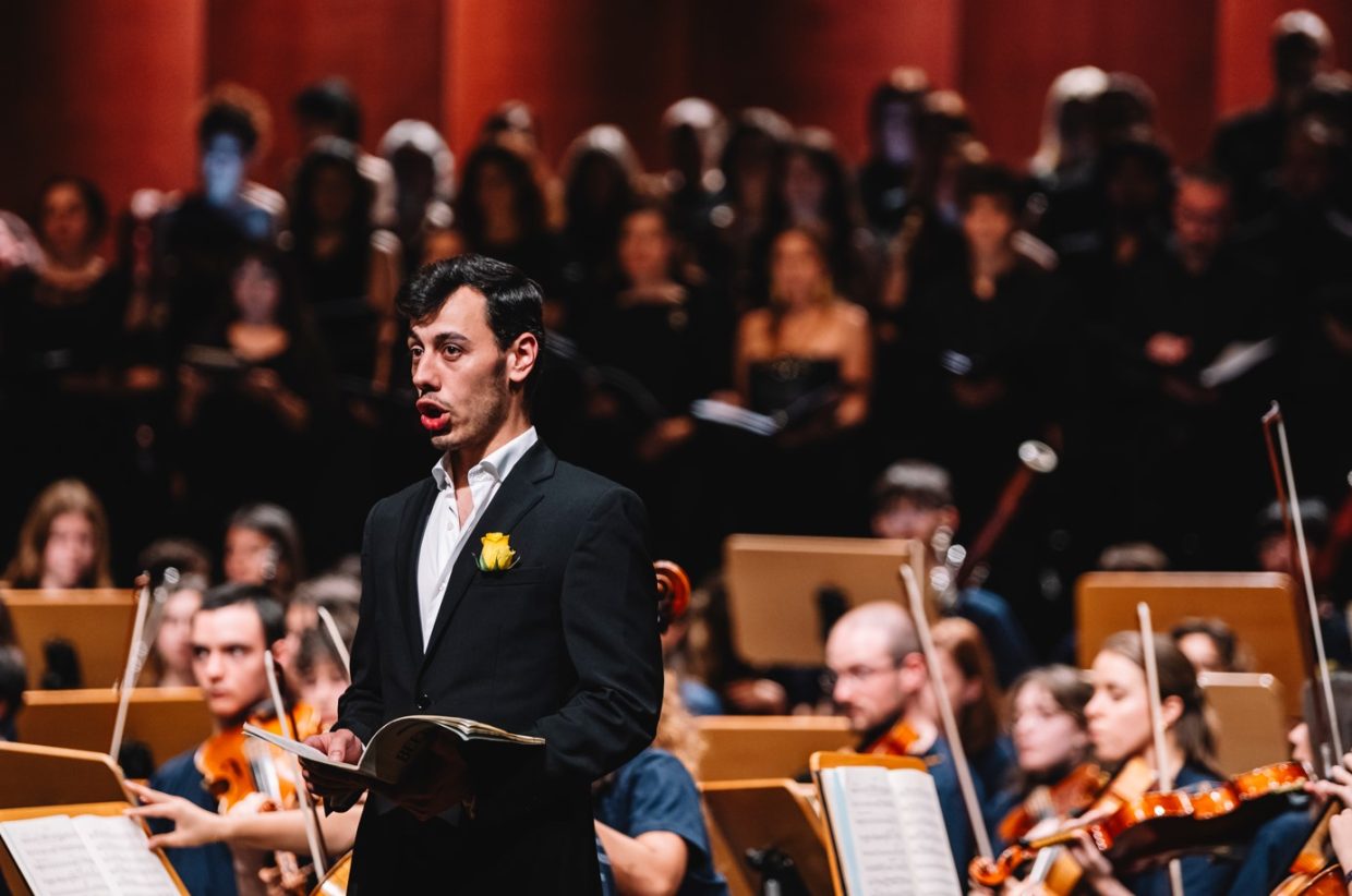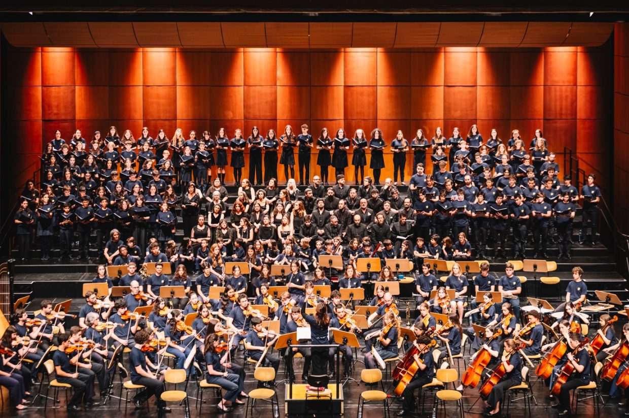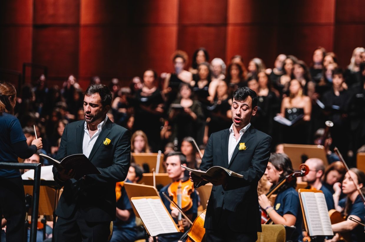 Integrado nas celebrações dos 100 Anos de Mário Soares, e sob o mote de “encontro de centenários”, o espetáculo contou com a direção da conceituada maestrina Joana Carneiro, que dirigiu com entusiasmo uma orquestra composta por músicos da Escola Artística de Música do Conservatório Nacional, da Orquestra Geração, da Escola Artística do Instituto Gregoriano de Lisboa, da Escola de Música de Nossa Senhora do Cabo e da Escola de Música do Colégio Moderno. A estes jovens músicos juntaram-se o coro Voces Caelestes e os solistas Rafaela Albuquerque (soprano), Cátia Moreso (mezzo), André Henriques (barítono) e Frederico Projecto (tenor).